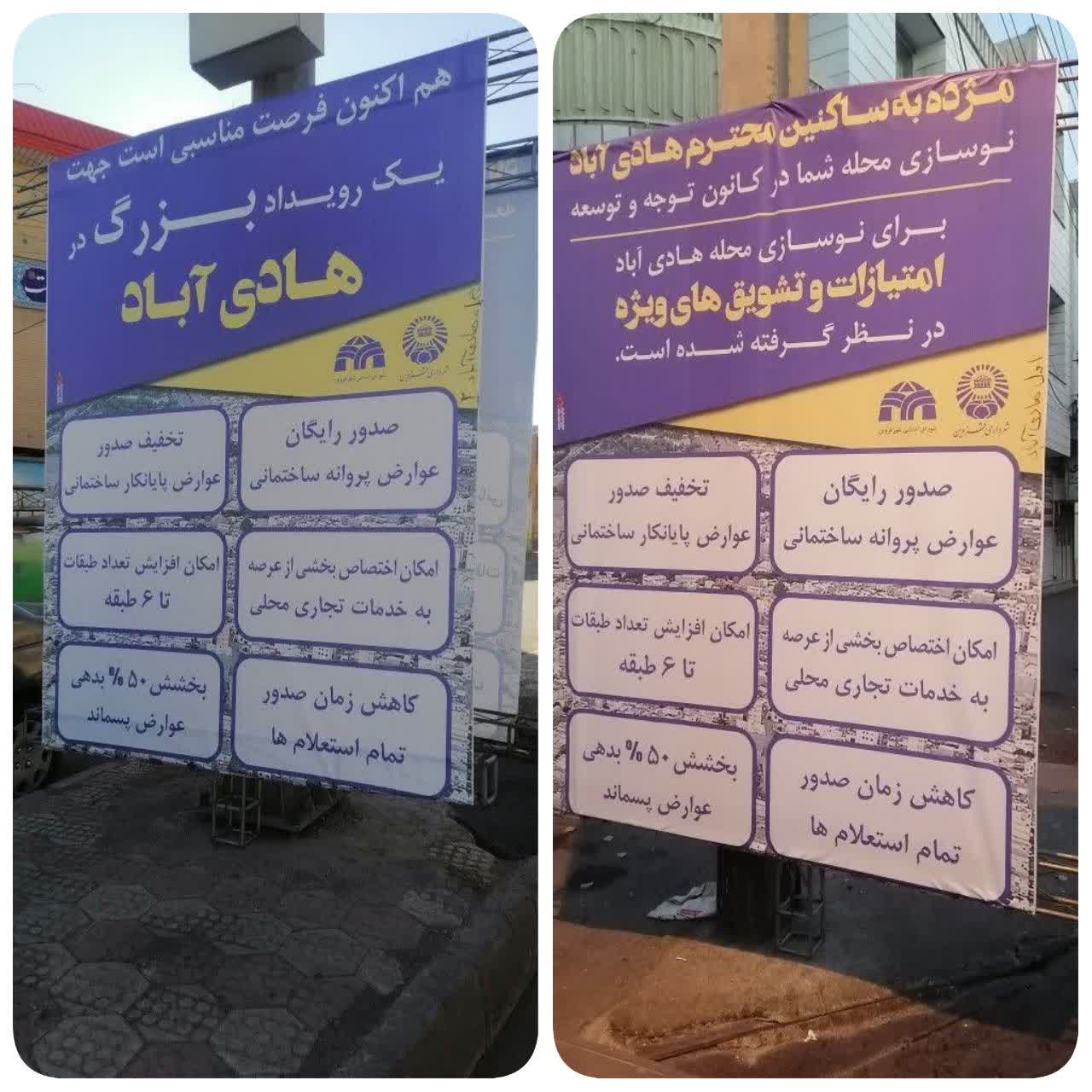 تبلیغات محیطی بستههای تشویقی نوسازی بافت فرسوده هادی آباد(1)