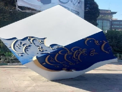 رنگآمیزی و پاکسازی المان مکعب خوشنویسی چهارراه ولیعصر توسط سازمان زیباسازی شهرداری قزوین