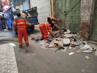 طرح پاکسازی و جمع‌آوری پسماندهای حجیم داخل بازارسنتی در حال اجرا است.