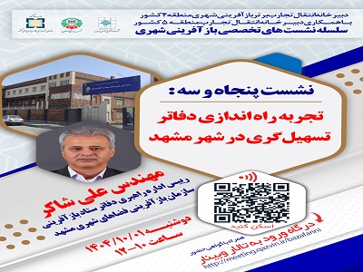 پنجاهویکمین نشست از سلسله نشستهای تخصصی بازآفرینی شهری، با موضوع «توانمندسازی محلی با رویکرد تأمین مالی خرد و ایجاد و توسعه کسبوکارهای خرد در محلات هدف بازآفرینی شهری» به همت دبیرخانه انتقال...