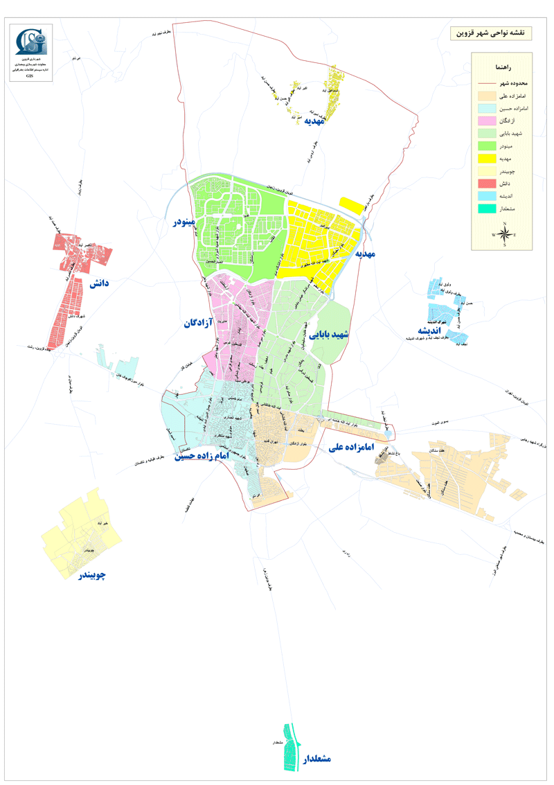 معاون شهرسازي و معماري يادآور شد: ناحيه انديشه شامل نجف آباد، حسن آباد، وثوق آباد و شهرک انديشه در منطقه 3 شهرداري، ناحيه چوبيندر شامل چوبيندر و خير آباد در منطقه يك شهرداري، ناحيه دانش شامل شهرک دانش و ناصر آباد و منطقه يك شهرداري، ناحيه مشعلدار شامل مشعلدار و محمد آباد كه به تازگي به عنوان ناحيه تصويب شده استدر منطقه يك شهرداري، از نواحي منفصل شهري به شمار مي روند و خارج از محدوده قانوني و در حريم شهر قزوين قرار دارند.
