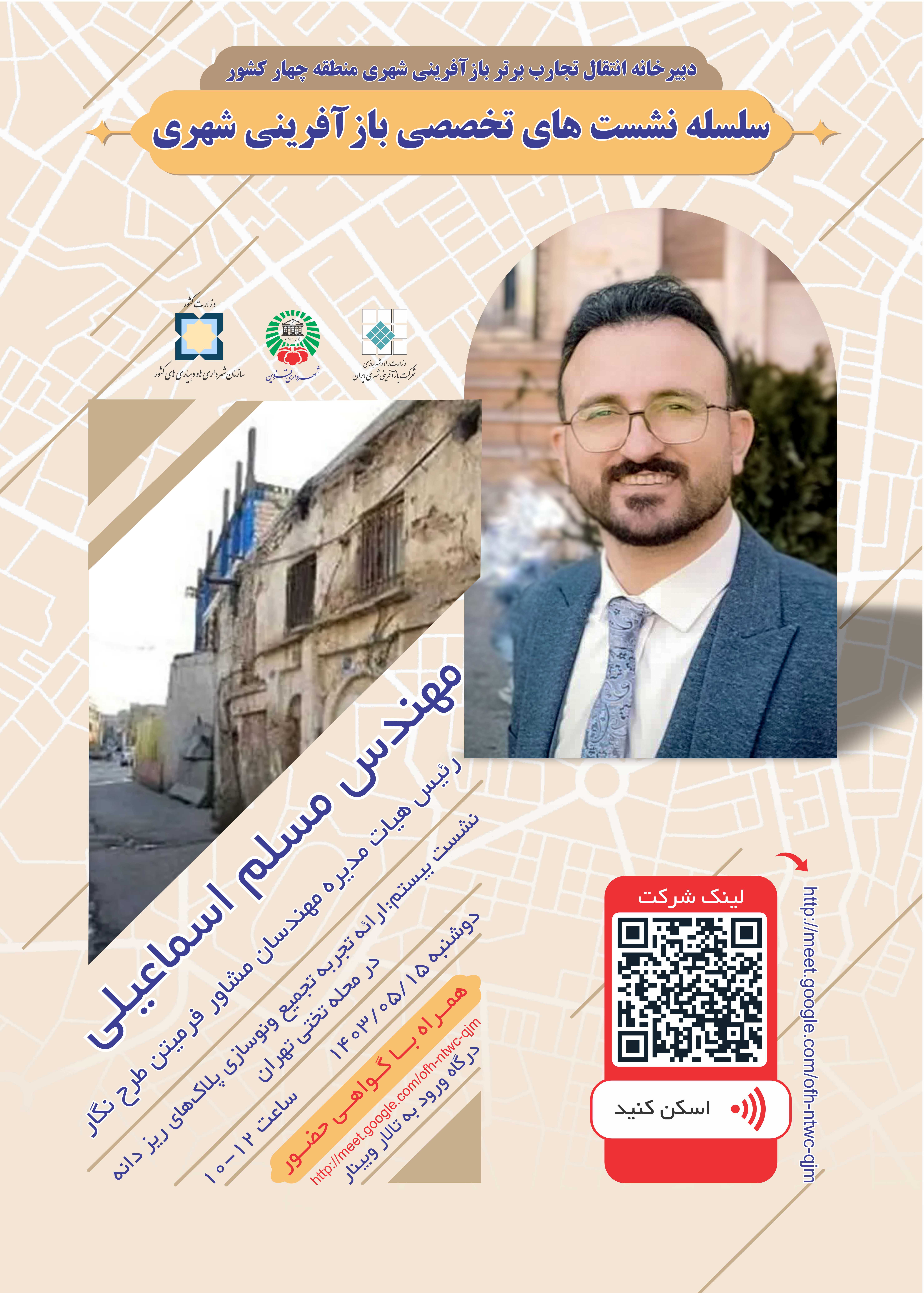بیستمین نشست از سلسله نشست‌های تخصصی بازآفرینی شهری با محوریت " ارائه تجربه تجمیع و نوسازی پلاک های ریزدانه در محله تختی تهران" به صورت وبینار برگزار شد.